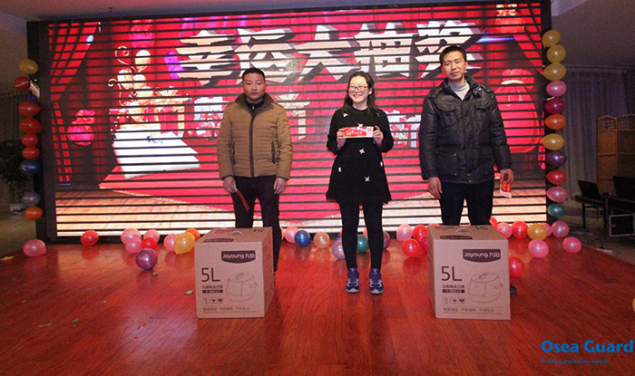 “上下同欲、飛越未來”,2017年1月20日下午,江蘇歐西建材科技發展有限公司2016辭舊迎新年終晚宴在洪澤湖國際大酒店酒店隆重舉行,公司各部門員工及邀約嘉賓120余人歡聚一堂,現場的氣氛一度燃燒成這個寒冬Z熱烈的火,溫暖著每個人。