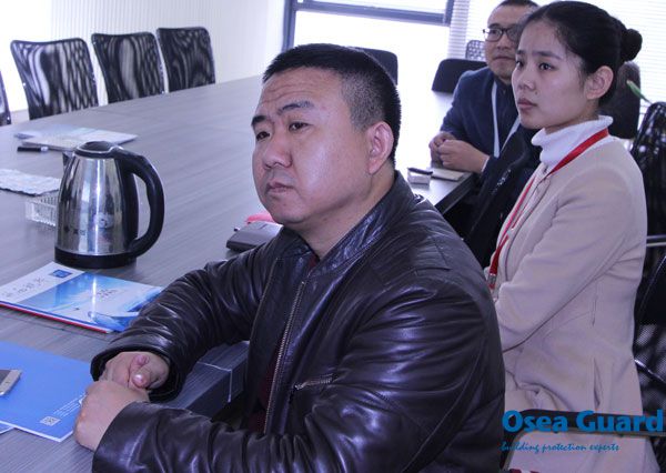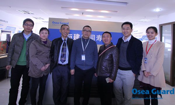 2016年3月7日上午,海南省防水協(xié)會(huì)會(huì)長孫慶生、常務(wù)副會(huì)長孫彥濤、江蘇鹽城市康泰建筑灌漿技術(shù)有限公司高工陳森森考察團(tuán)一行蒞臨歐西建科南京總部進(jìn)行參觀考察,歐西建科王洪波總經(jīng)理、郭紅副總經(jīng)理進(jìn)行了熱情接待并陪同座談。
