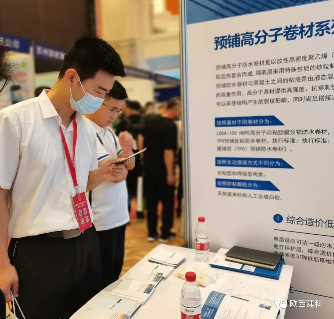 會議期間,會場外設有多個防水展位,相關企業展出了自己的新產品、新技術、新成果,歐西展位前也是如火如荼,許多行內專業人士被我們帶來的新產品和技術吸引了目光,紛紛駐足觀看。