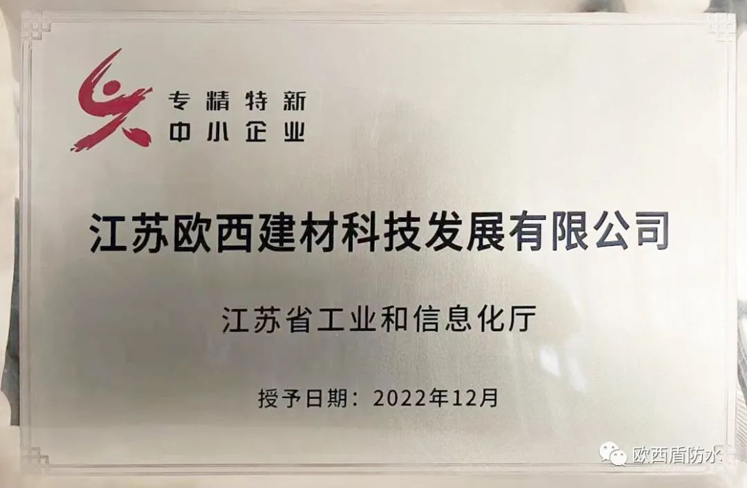此次獲評為江蘇省專精特新“小巨人”企業(yè),是對歐西盾防水發(fā)展成果的重要肯定,有利于進一步提升歐西盾防水的行業(yè)地位和市場競爭力。未來,歐西盾防水將繼續(xù)秉承專精特新“小巨人”企業(yè)的專業(yè)化、精細化、特色化、新穎化精神,勇立潮頭、勤修內功,為國內防水行業(yè)的高質量發(fā)展提供歐西盾動能。